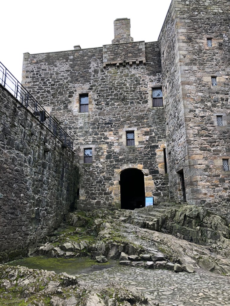 Originally it was built as a home, but soon was used as a Garrison Fortress and a state prison. The outside of the castle area has a gun hole that was damaged in 1651 during Cromwells invasion of Scotland. It was poorly patched up and you can still see the damage.